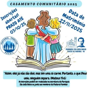 A Paróquia São João Bosco está com as inscrições abertas para o tão esperado Casamento Comunitário, uma oportunidade especial para casais que desejam selar sua união com a Bênção de Deus.