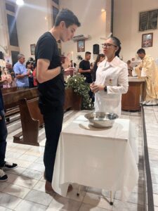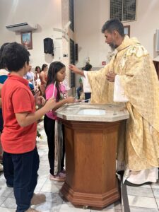 Na paróquia Dom Bosco, ao celebra essa Solenidade, o pároco Padre Jair, ainda propôs, num ato cheio de significado a renovação da Promessas bastimais, usando a vela, o óleo do Crisma e a água. Num convite não apenas memorial, mas ainda mais profundo de adesão aos compromissos já vividos com o Sacramento da Iniciação Cristã: o batismo.