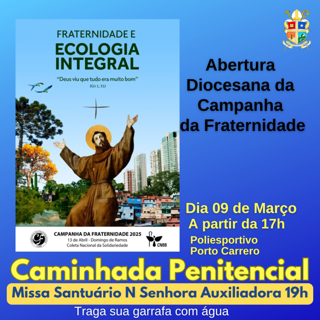 Sem Categoria Caminhada Penitencial e Abertura da Campanha da Fraternidade 2025 Caríssimos irmãos e irmãs em Cristo, É com grande alegria que convidamos toda a comunidade diocesana para participar da Ler mais